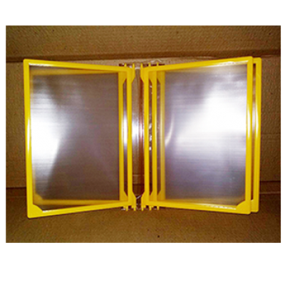 Мы готовы произвести для вас стенды с перекидной (ротационной) системой. Базовая комплектация - 5 рамок-карманов желтого цвета. Но в случае необходимости возможна другая комплектация как по количеству рамок с протекторами, так и по цвету рамок. Держатель прозрачный, поэтому подойдёт к любому стенду. Стенды могут быть как информационные в учреждения, так и тематические. Например, по правилам дорожного движения, логопедические, школьные и другие. По вашим требованиям мы можем послать вам фотографии рамки или всей перекидной системы, чтобы вы могли оценить качество.