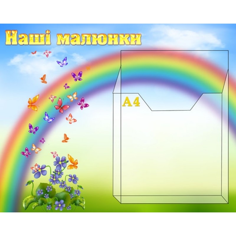 Опис: стенд з об'ємною кишенею під малюнки формату А4.