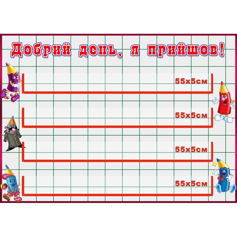 Характеристики виробу: основа - ПВХ 3 мм з накаткою самоклейкої плівки з друком зображення роздільною здатністю 1440 dpi. 4 пласкі кишені формату 55х5 см.