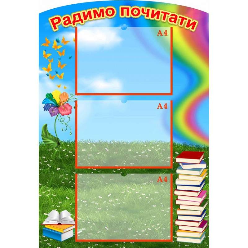 Опис: Інформаційний стенд з кишенями з прозорого пластику ПЕТ 0,75 мм