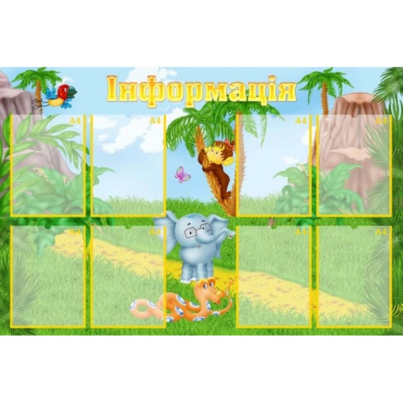 Опис: Інформаційний стенд з кишенями з прозорого пластику ПЕТ 0,75 мм