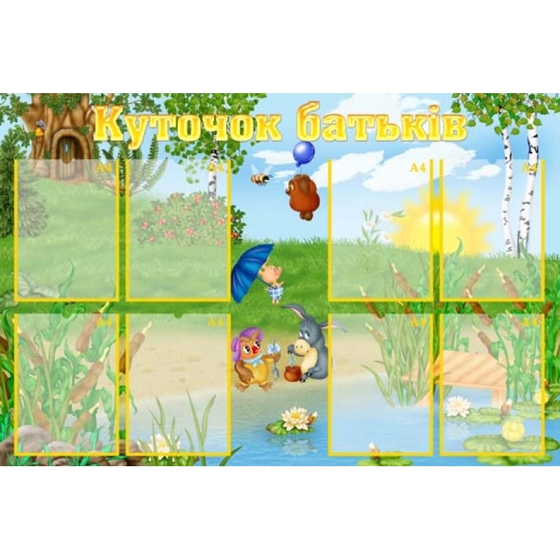 Опис: Інформаційний стенд з кишенями з прозорого пластику ПЕТ 0,75 мм