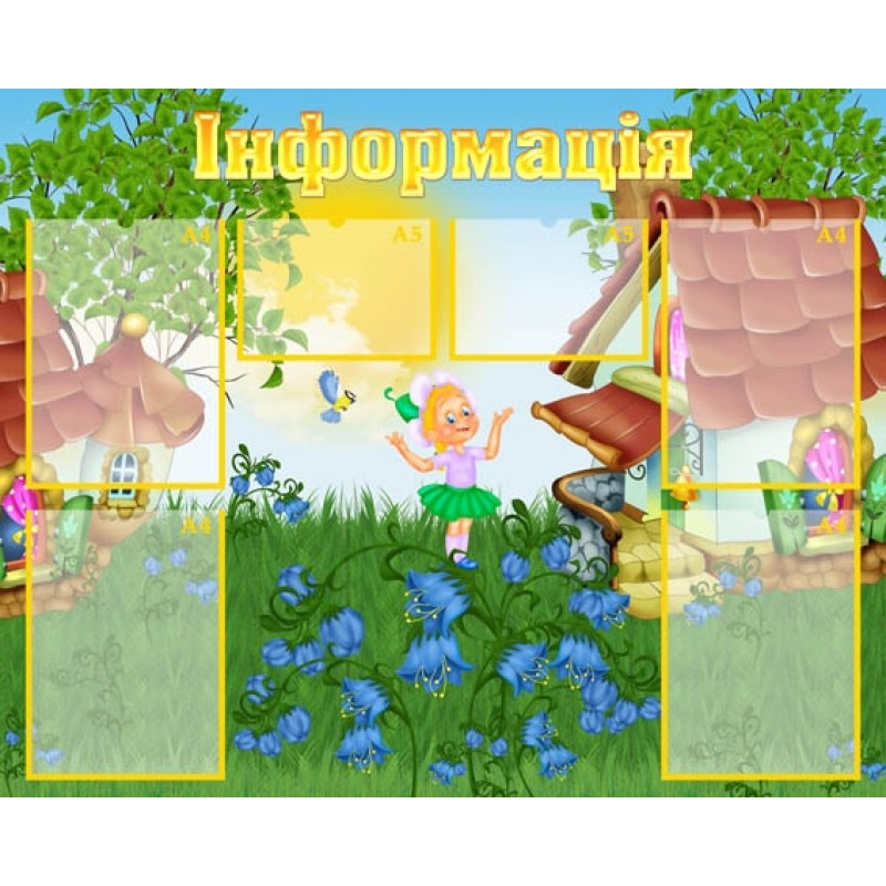 Опис: Інформаційний стенд з кишенями з прозорого пластику ПЕТ 0,75 мм
