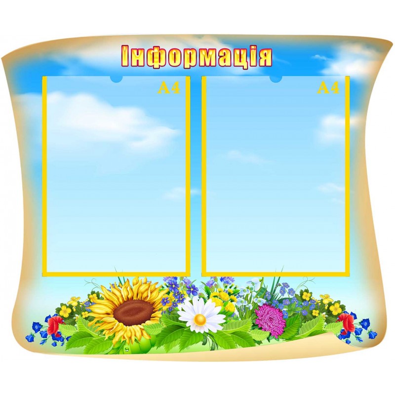 Опис: Інформаційний стенд з кишенями з прозорого пластику ПЕТ 0,75 мм