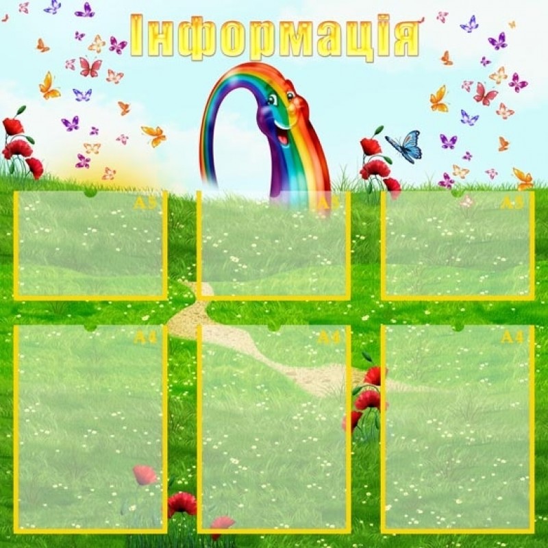 Опис: Інформаційний стенд з кишенями з прозорого пластику ПЕТ 0,75 мм