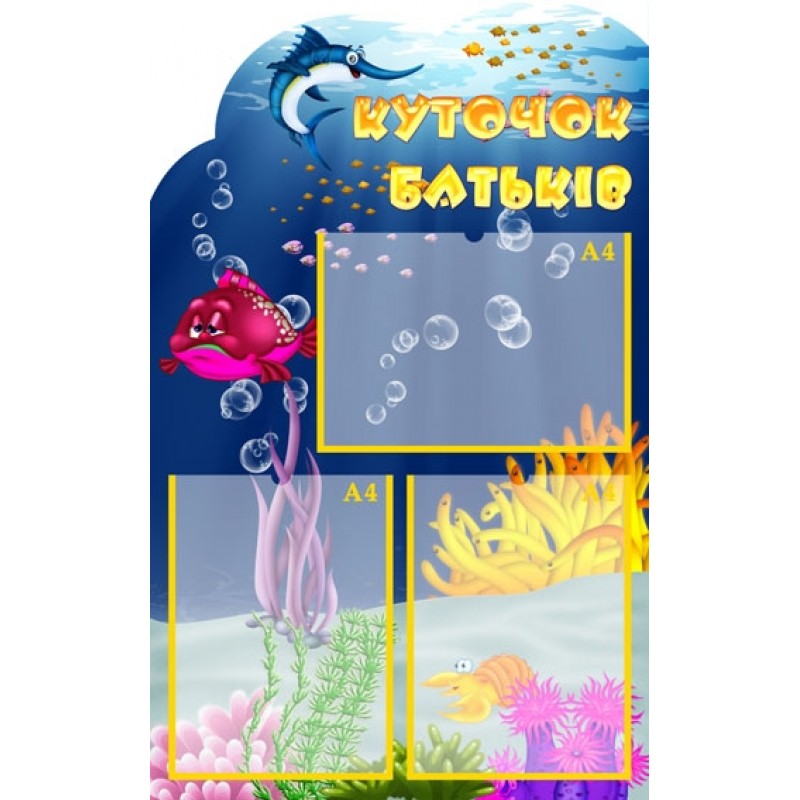 Опис: Інформаційний фігурний стенд з кишенями з прозорого пластику ПЕТ 0,75 мм