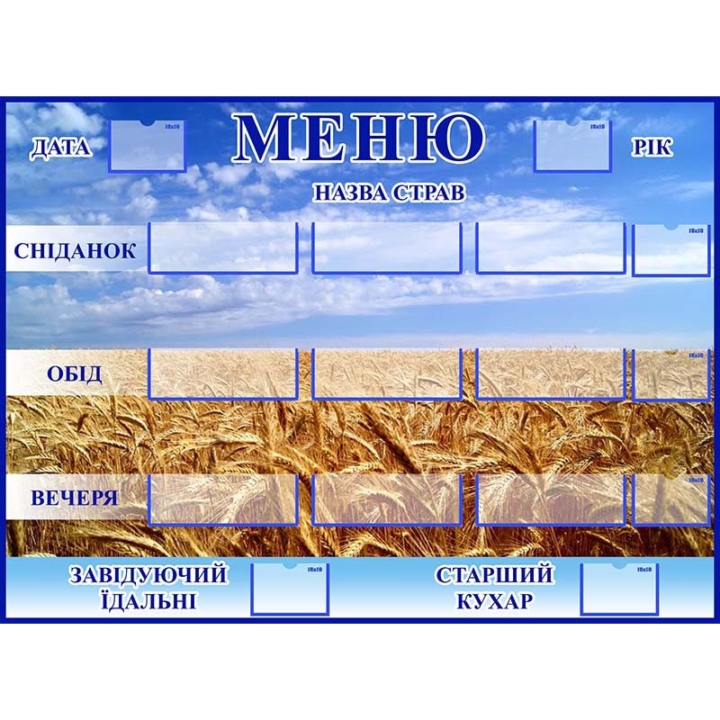 Характеристики виробу: основа - ПВХ 3 мм з накаткою самоклейкої плівки з друком зображення роздільною здатністю 1440 dpi. 7 пласких кишень формату 15*10см, 9 пласких кишень формату 30*10см