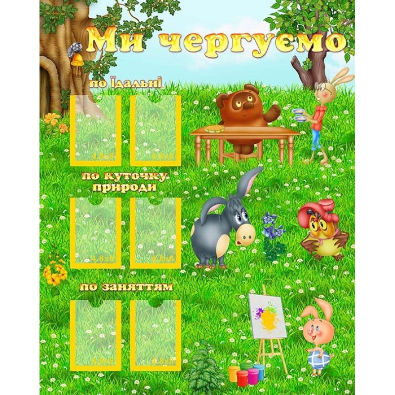 Характеристики виробу: основа - ПВХ 3 мм з накаткою самоклейкої плівки з друком зображення роздільною здатністю 1440 dpi. 6 пласких кишень формату 48*80 мм (кріплення на двобічний скотч)