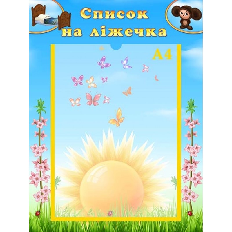 Характеристики виробу: основа - ПВХ 3 мм з накаткою самоклейкої плівки з друком зображення роздільною здатністю 1440 dpi. 1 пласка кишеня формату А4 (кріплення на двобічний скотч)
