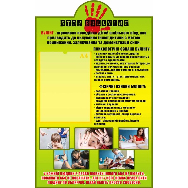 Характеристики виробу: основа - ПВХ 3 мм з накаткою самоклейкої плівки з друком зображення роздільною здатністю 1440 dpi. 1 пласка кишеня формату А4