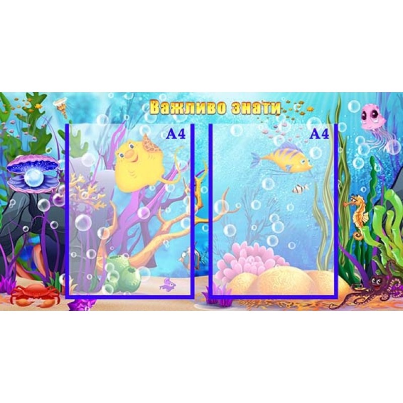 Характеристики виробу: основа - ПВХ 3 мм з накаткою самоклейкої плівки з друком зображення роздільною здатністю 1440 dpi. 2 пласкі кишені формату А4 (кріплення на двобічний скотч)