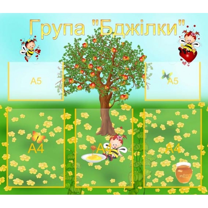 Характеристики виробу: основа - ПВХ 3 мм з накаткою самоклейкої плівки з друком зображення роздільною здатністю 1440 dpi. 3 пласкі кишені формату А4, 2 пласкі кишень формату А5