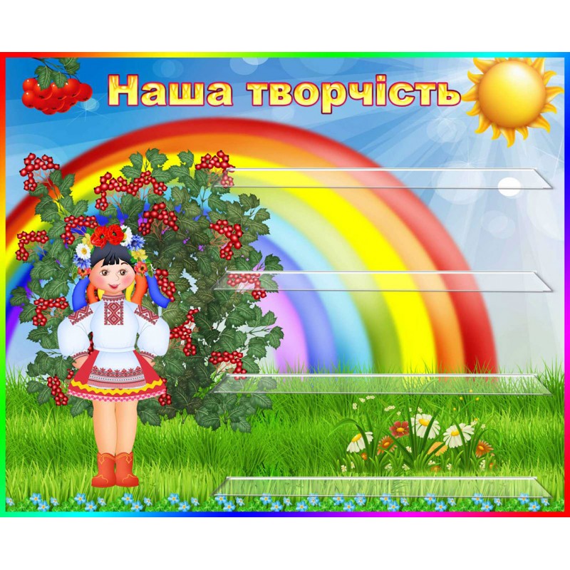 Характеристики виробу: основа - ПВХ 3 мм з накаткою самоклейкої плівки з кольоровим друком зображення роздільною здатністю 1440 dpi. Полички з прозорого акрилу 2 мм.
