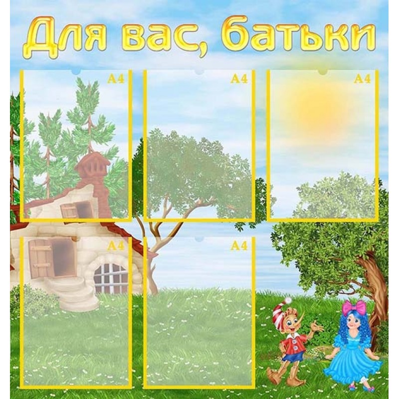 Опис: Інформаційний стенд з кишенями з прозорого пластику ПЕТ 0,75 мм