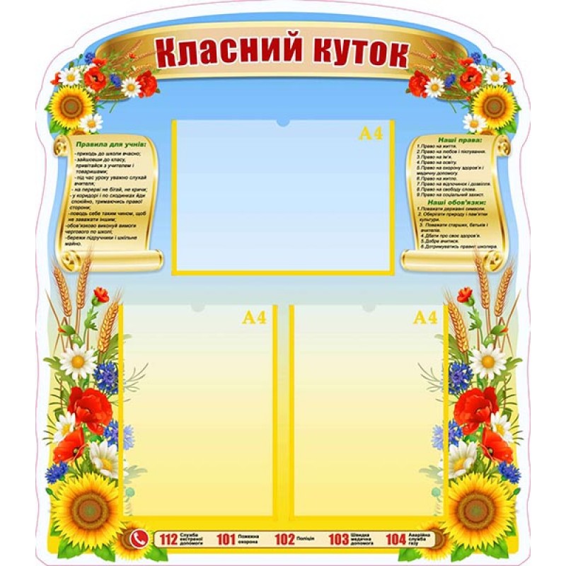 Опис: Інформаційний фігурний стенд з кишенями з прозорого пластику ПЕТ 0,75 мм