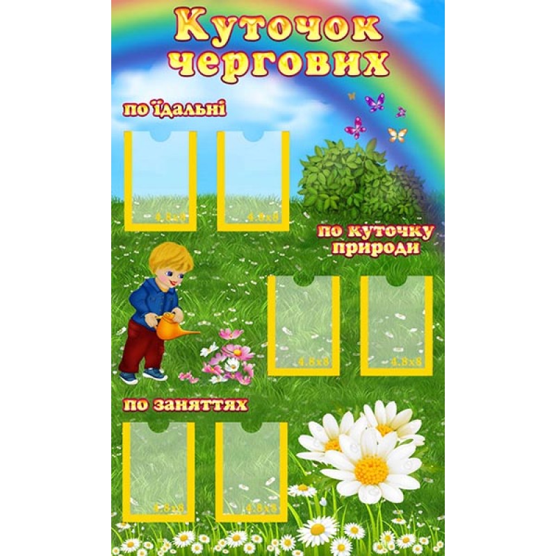 Характеристики виробу: основа - ПВХ 2 мм з накаткою самоклейкої плівки з друком зображення роздільною здатністю 1440 dpi. 6 пласких кишень формату 48*80 мм (кріплення на двобічний скотч)