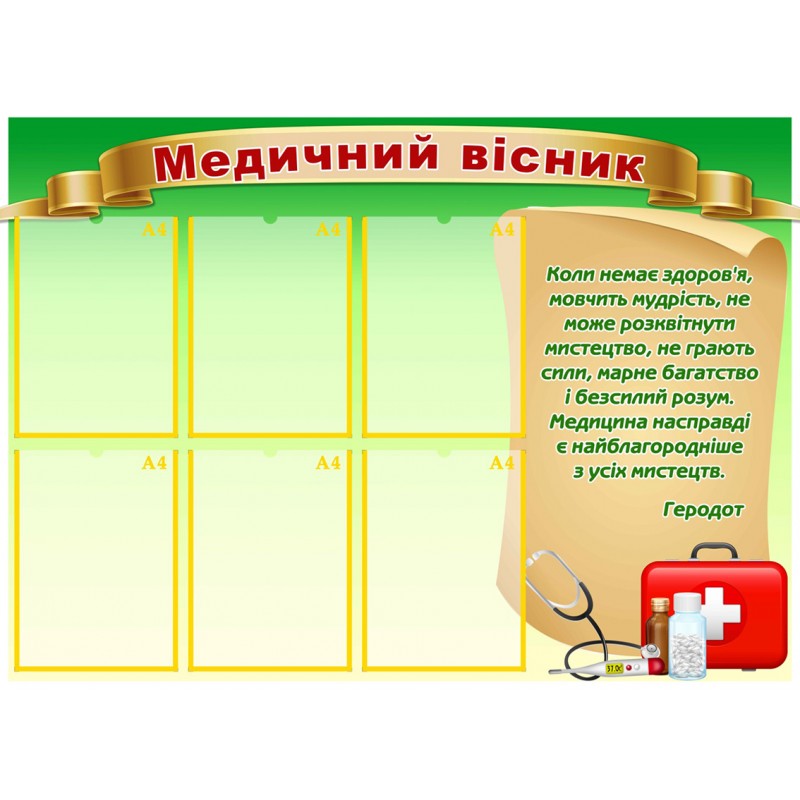 Опис: Інформаційний стенд з кишенями з прозорого пластику ПЕТ 0,75 мм