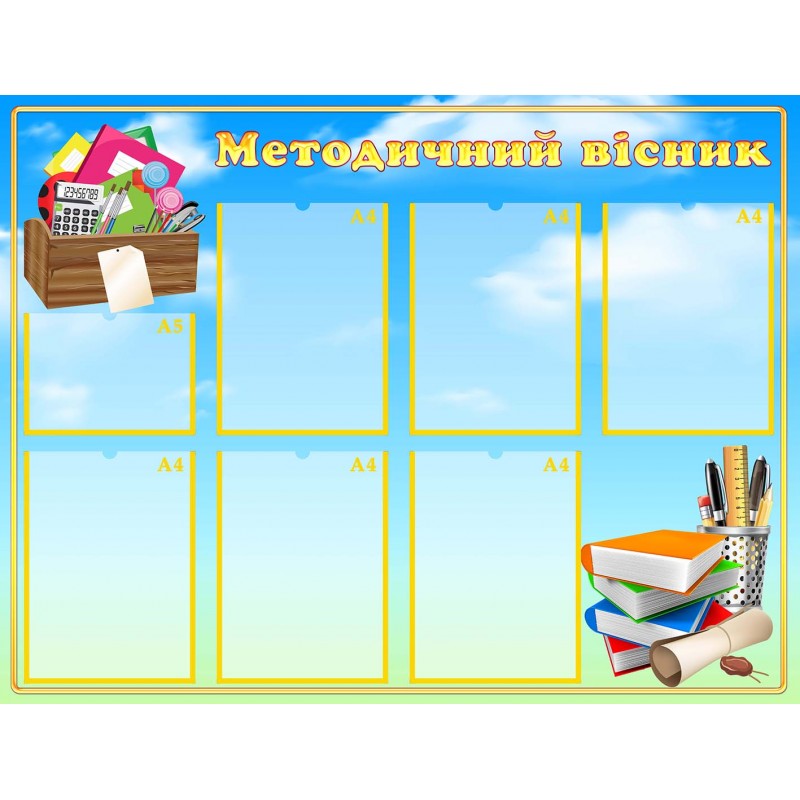 Опис: Інформаційний стенд з кишенями з прозорого пластику ПЕТ 0,75 мм