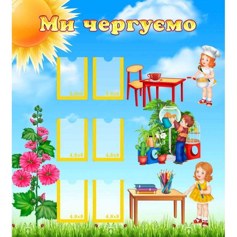 Характеристики виробу: основа - ПВХ 3 мм з накаткою самоклейкої плівки з друком зображення роздільною здатністю 1440 dpi. 6 пласких кишень формату 48*80 мм (кріплення на двобічний скотч)