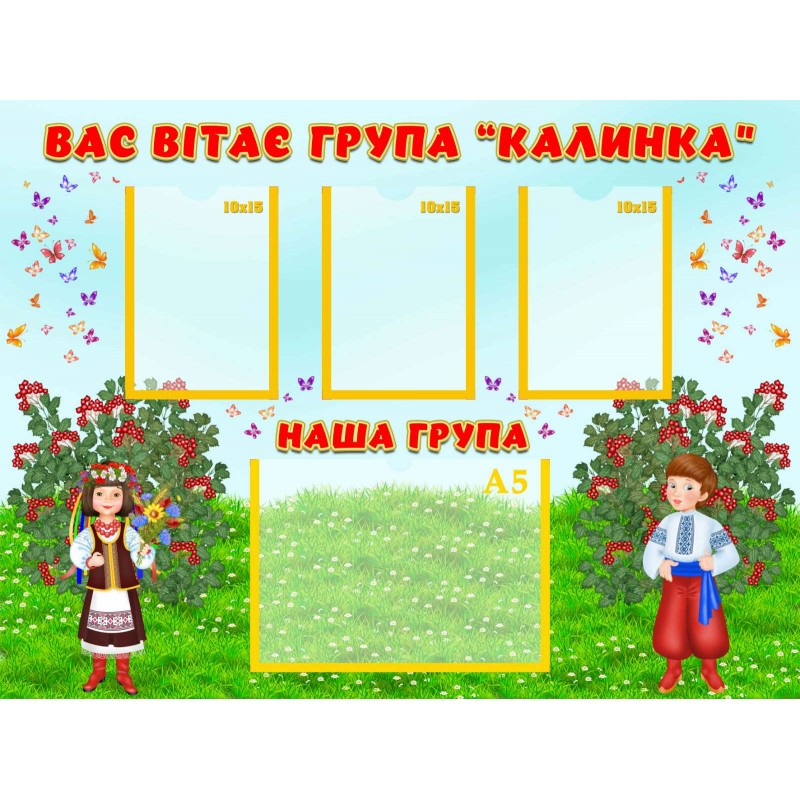 Опис: Інформаційний стенд з кишенями з прозорого пластику ПЕТ 0,75 мм